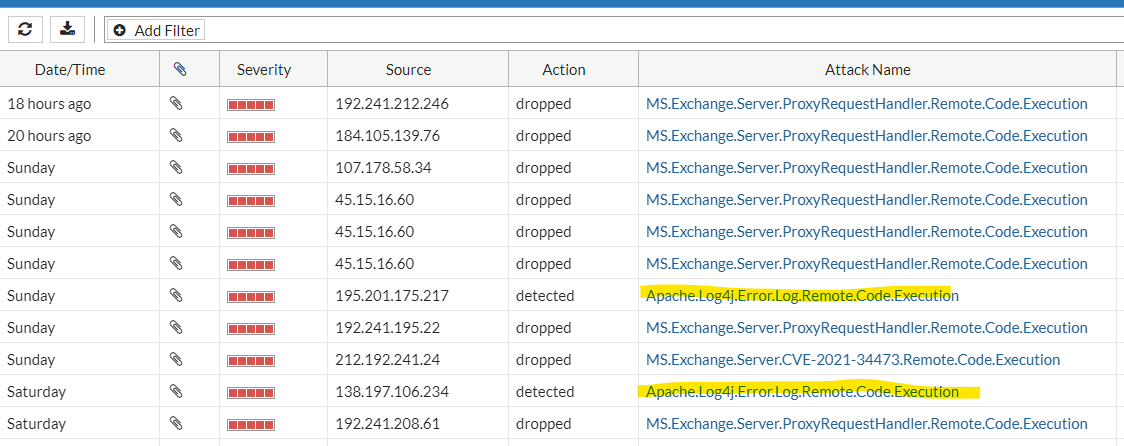 Fortigate firewall logs are showing that malicious scans on client networks were detected as early as Saturday. This vulnerability was quickly weaponized, and hackers surely wanted to take advantage that the weekend might afford them. Thankfully our clients' Fortigate IPS databases are setup to update automatically, so they received new IPS signature before the weekend began!