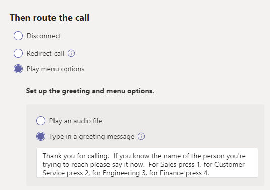Teams Auto Attendants meet most needs for small organizations. An excellent feature is the "Type in a greeting message" feature. This feature will read whatever is typed to the caller. The quality of the voice is excellent and it's hard to distinguish that a computer is saying the words!