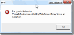 In addition to the client, there is an update service that you have the option of installing when you first install the VMware Infrastructure, or vSphere client: vSphere Host Update Utility 4.0, or VMware Infrastructure Update for pre 4.0 installations. This application will open, but when you try to add a host, it throws an exception similar to the first one above. Because updates are not rampant for VMware hosts, and it’s only a matter of time before VMware releases a new client, I have decided not to spend any more time trying to find a workaround for the update service.