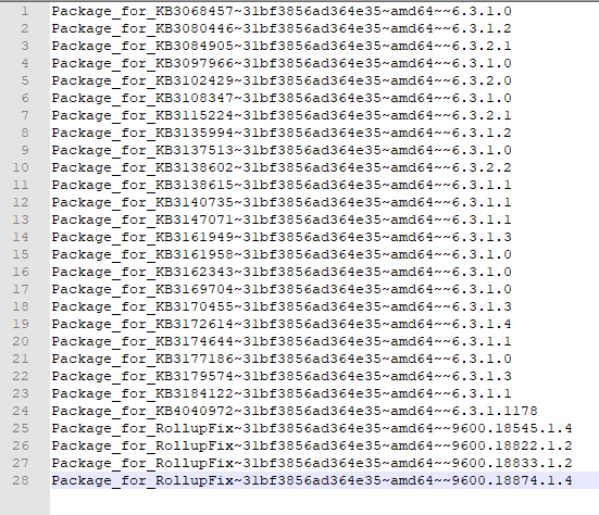 Package_for_RollupFix~31bf3856ad364e35~amd64~~14393.2007.1.8 | Installed | Security Update | 1/31/2018 8:19 PMPackage_for_KB4049065~31bf3856ad364e35~amd64~~10.0.1.3 | Staged | Update | 1/6/2018 2:17 AM...